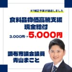- 物価高騰対策支援事業含め、補正予算が通過しました!国の新たな総合経済対策に基づく食料品の物価高騰支援として、市民ひとりひとりに対して現金を給付する事業を実施することを以前ご案内いたしました。 今回、その国からの支援が想定より多くなることから、現金給付を【一人当たり3,0 […]