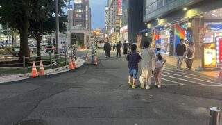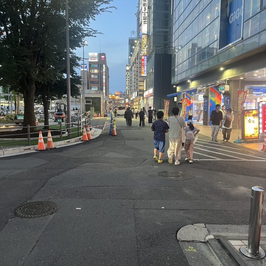 ①現在駅前広場側が街渠の工事中であり、それが終わると道路がロータリー側に広がる予定。