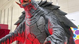 文化会館たづくりエントランスホールではクラウドファンディングにて修復したガメラ3の立像を特別展示しています!