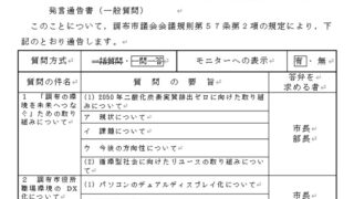 先ほど一般質問の通告を行ってきました。テーマは3つ、以下の通りです。