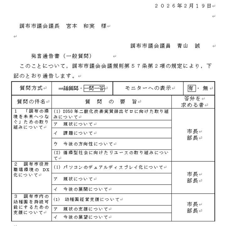 いずれも今日の調布市に重要なテーマです。しっかりと準備し、いいやり取りができるよう頑張ってまいります!
