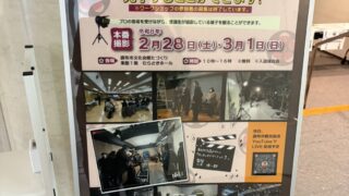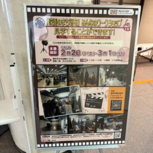 撮影不可のため画像はありませんが、プロの方とともに高校生以上の映画・映像業界で働くことを志望する人が入り、コマ送りの映像やクロマキーなども含めて撮影されていました。